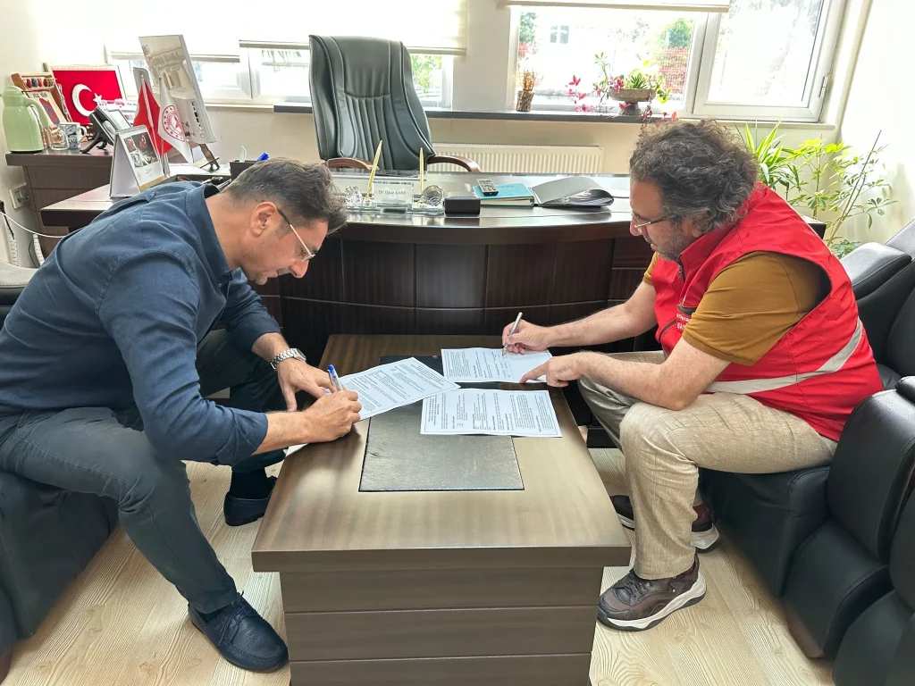 Türk Kızılayı Trabzon şubesi ile Çakıroğlu Eğitim ve Kültür Vakfı arasında deprem bölgesine yardım ve kütüphane yapılmasına ilişkin iş birliği protokolü imzalandı.